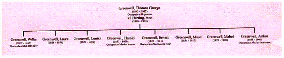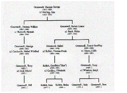 What it meant, in effect, was that I could set myself a new goal. I could do exactly the reverse of what my grandfather had done - look for all the descendants of George Greenwell and Mary Wilson. As an enterprise, this was not doomed like my grandfather's. Or at least, that's what I thought. My brain's hard drive was already crammed with memory, and some of it was certainly random access. I was like some Texas Ranger following several trails at the same time, and with no Tonto. Leave aside the issue - in both senses - of George Greenwell's second son, George, I was now trying to chase up all the following: